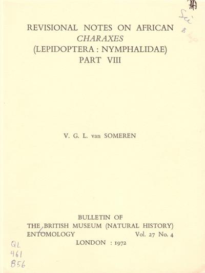 Revisional Notes on African Charaxes (Lepidoptera: Nymphalidae). Part VIII
