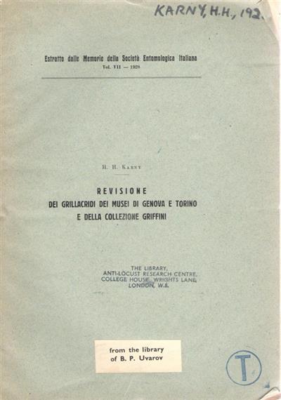 Revisione dei Grillacridi dei Musei di Genova e Torino e della Collezione Griffini