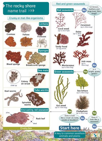Fully encapsulated, fully waterproof version. Illustrated identification key to British seashore - an 8-panel laminated fold-out chart will help you to identify some of the seashore animals, lichens and seaweeds that you are most likely to see. It also describes some of the major environmental factors that influence them. It is suitable for children's visits to rocky shores and rock pool investigations.