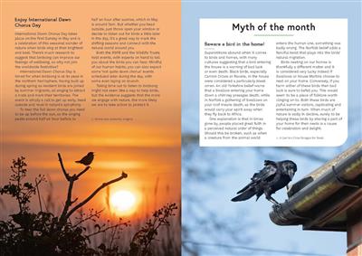The book is packed with information and photos and is ideal for anyone keen to learn more about the birds of the British Isles. Each month includes detailed profiles of five common birds and a more challenging species to try to see, as well as explorations of bird myths and folklore and practical advice from professionals on how to encourage birds into your garden.