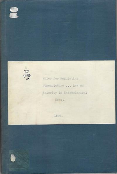 Rules for Regulating Nomenclature with a View to Secure a Strict Application of the Law of Priority in Entomological Work