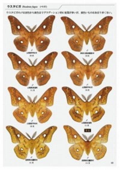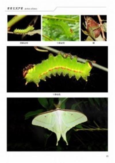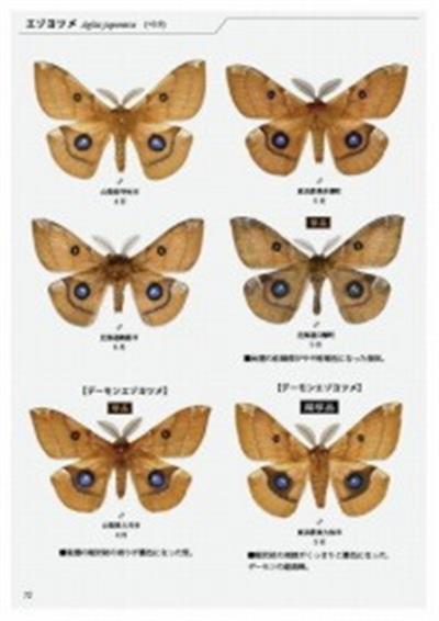 Text Japanese. Saturniid moths of Japan, illustrating 13 species including many rare forms, plus larval photos.