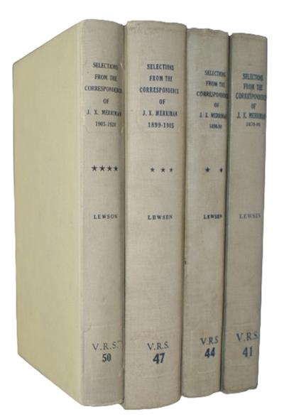 Selected letters and correspondence of John Xavier Merriman (1841-1926), who served as the final Prime Minister of the Cape Colony before the formation of the Union of South Africa in 1910. Van Riebeeck Society Publications Vol. 41, 44, 47, 50.