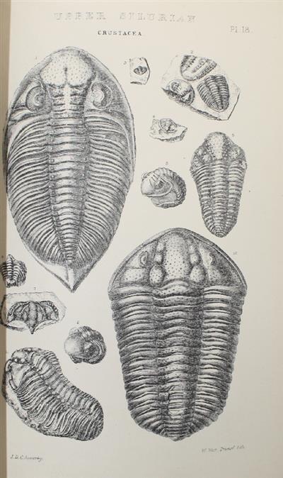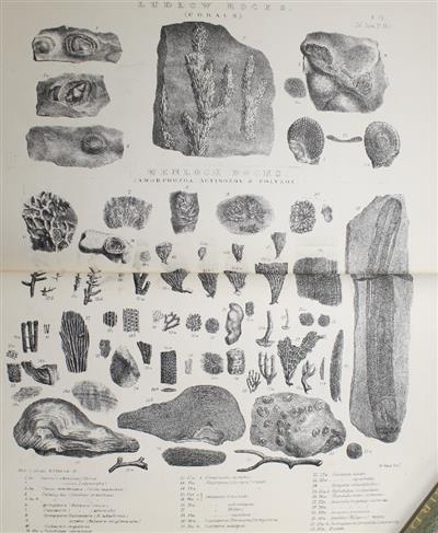 5th edition. Chromolithographic frontispiece by Charlotte Dempster, printed by Vincent Brooks; 41 lithographic plates of fossils by J.D.C. Sowerby, printed by W. West (bound in separate volume).