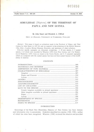 Simuliidae (Diptera) of the territory of Papua and New Guinea