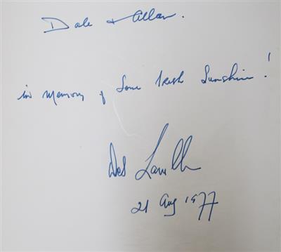 4to, pattered paper boards. Vg in d/w (minor wear to top edge). Inscribed by the author "Dale & Allan, in memory of some Irish sunshine! Des Lavelle 21 Aug 1977".