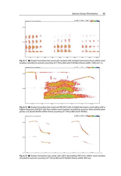 The book contains an overview of the species of bats in Britain and Ireland (Chapter 1), introduces communication within the social world of bats (Chapter 2). Referencing the latest research, the authors explore how these calls can be classified according to their structure, and in many cases the context in which the calls are thought to be emitted (Chapter 3). Chapter 4 addresses aspects of survey methodology to be considered by those studying social calls. This leads on to the analysis of calls (Chapter 5), detailing the specific methods used and parameters commonly measured by researchers. The final, and main chapter (Chapter 6) introduces the 23 species covered in the book giving each a detailed profile including: habitat preferences, typical roosting locations, roost emergence times, mating strategies and maternity behaviour. Each species profile includes what is known about the social calls for that species and this text is supported by colour sonograms (created using Pettersson BatSound V4.1) of most of the calls discussed. Each sonogram is linked to a .wav sound file (Time Expansion x10) within the downloadable library. The sound files allow the reader to hear, as well as see, the calls produced using any bat sound analysis software that supports the .wav format.