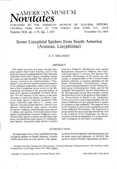 Some Linyphiid Spiders from South America (Araneae, Linyphiidae)