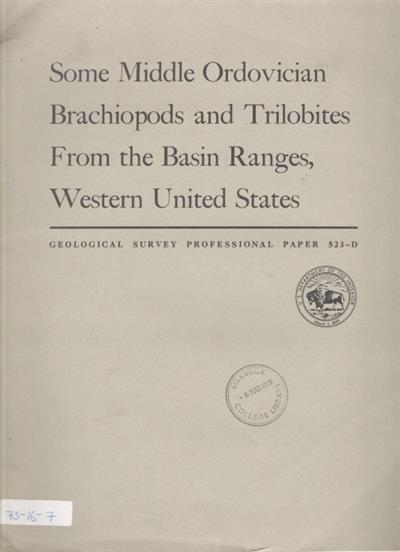 Some Middle Ordovician Brachiopods and Trilobites From the Basin Ranges, Western United States