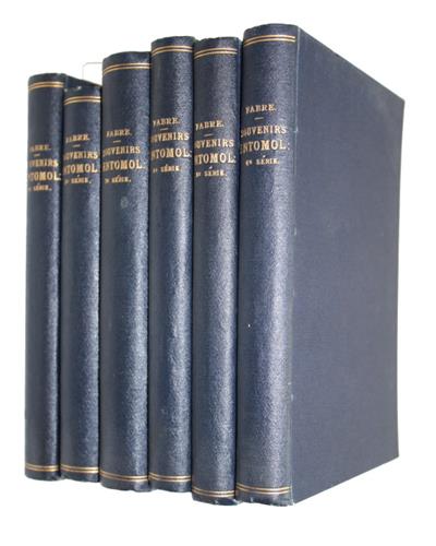 Text French. Ser. 1+3 - 2nd edition. Ser. 6 - undated [1899]. The first six of ten volumes. Serie 2 titled 'Nouveaux Souvenirs Entomologiques ...' In this work Fabre presents his studies and descriptions of the life and habits of insects, motsly coleoptera and hymenoptera