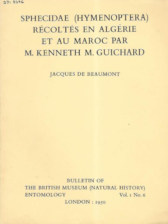 Spechidae (Hymenoptera) recoltes en Algerie et au Maroc par M. Kenneth M. Guichard