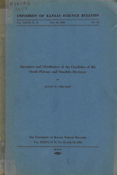 Speciation and Distribution of the Crayfishes of the Ozark Plateaus and Ouachita Provinces