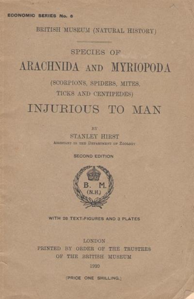 Species of Arachnida and Myriopoda (Scorpions, Spiders, Mites, Ticks and Centipedes) Injurious to Man