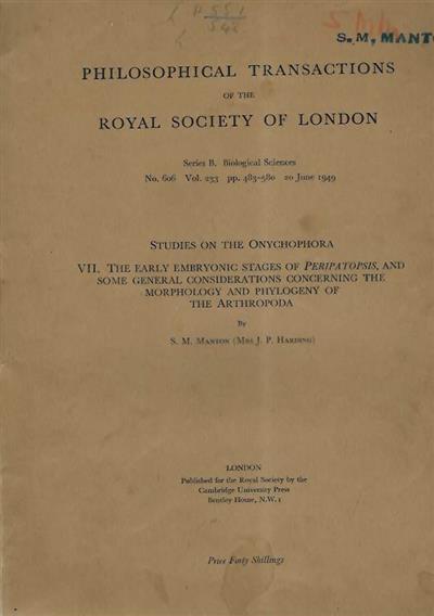 Studies on the Onychophora VII. The Early Embryonic Stages of Peripatopsis, and some general considerations concerning the morphology and phylogeny of the Arthropoda