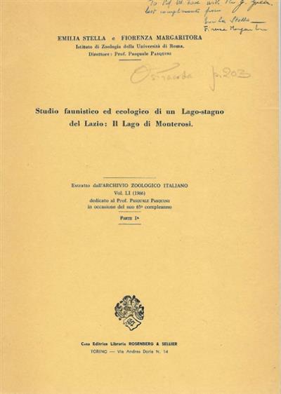 Reprint from Archivio Zoologico Italiano Vol. LI. Text Italian. A faunistic and ecological study of Lake Monterosi, Viterbo, Italy.