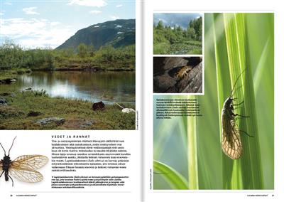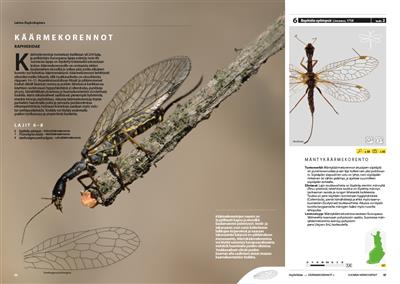 Text Finnish. Comprehensive, well illustrated guide to 85 species of Neuroptera and related groups known from Finland and neighbouting regions. Information on distribution, habitats, life history and status.