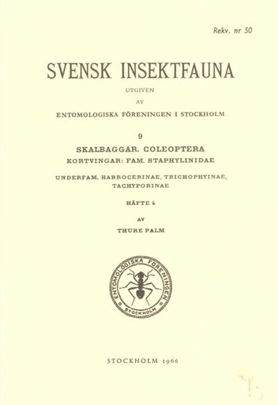 Svensk Insektfauna 9: Staphylinidae Pt 4: Habrocerinae, Trichophyinae, Tachyporinae