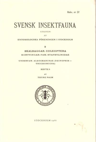 Svensk Insektfauna 9: Staphylinidae Pt 5: Aleocharinae (Deinopsis-Trichomicra)