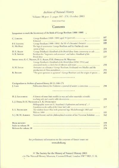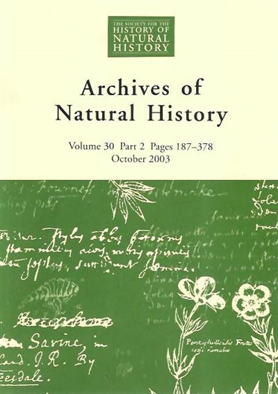 Archives of Natural History, Vol. 30(2), pp. 187-297. Bound with papers on other topics.