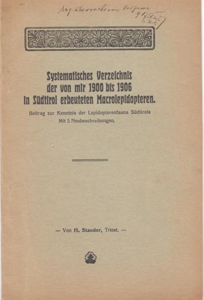Systematisches Verzeichnis der von mir 1900 bis 1906 in Südtirol erbeuteten Macrolepidopteren