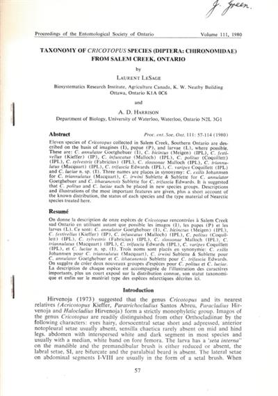 Taxonomy of Cricotopus species (Dptera: Chironomidae) from Salem Creek, Ontario