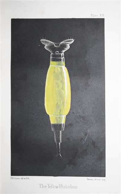 First edition. Scarce. 'This volume contains a detailed record of a summer holiday spent at Tenby. Nearly every day's occupation is set down, just as it occurred; tide-pool explorations, cavern searchings, microscopic examinations, scenery huntings, road-side pryings, - here they all are; a faithful narrative of how the Author was engaged for about six weeks at that pleasant little watering place.' - Preface. Written in epistolary style, the letters being addressed to 'E.', an 'esteemed relative in London', probably Gosse's brother-in-law, Edmund Elford Bowes (1808-1877). All the plates except three depict microscopic forms and were drawn by the author.