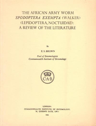The African Army Worm Spodoptera exempta (Walker) (Lepidoptera, Noctuidae): A Review of the Literature