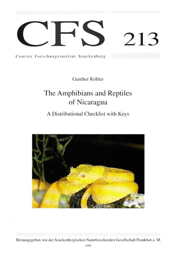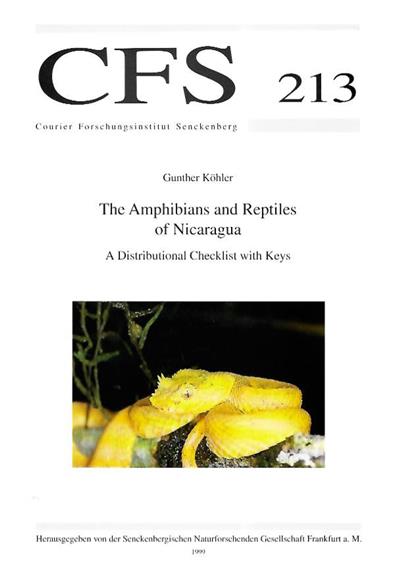 Courier Forschungsinstitut Senckenberg 213. Provides information on synonymy and geographic distribution both within Nicaragua and total range. Identification keys for orders, genera and species.