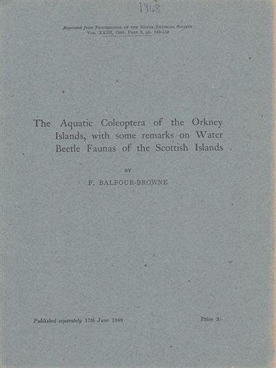 The Aquatic Coleoptera of the Orkney Islands, with some remarks on Water Beetle Faunas of the Scottish Islands