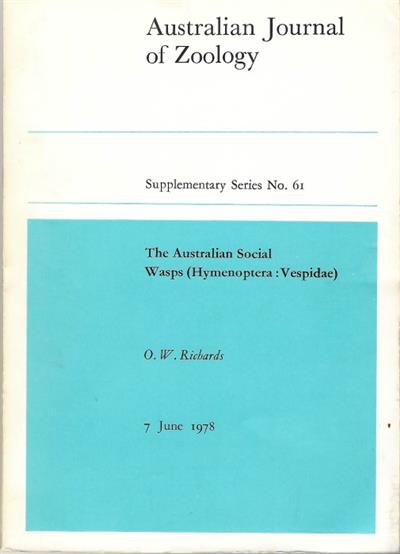 Australian Journal of Zoology, Supplementary Series no. 61, 4 June 1978.
