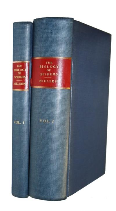 Text: Vol. 1 in English; vol. 2 in Danish. As stated in an abstract of a review of this work published in Nature, 1933 " This substantial work is a record of observations of the habits of Danish spiders, and appears in a somewhat unusual form. The full accounts are contained in the second volume, written in Danish and fully illustrated; the first volume is a slightly condensed [English] translation, almost without illustrations save for a collection of plates at the end. Thus the first volume forms an English guide to the second". The first volume includes additional observations not published in the second volume including investigations from the Riesengebirge and Tyrol and from Sweden (Smaaland and Öland).