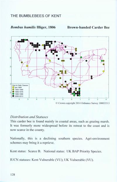 Kent has the highest diversity of bumblebee species in the UK. Provides a comprehensive guide to bumblebee ecology and offers an inclusive introduction to their identification. It discusses the importance of bumblebees, their decline and how we can help. It also includes detailed descriptions of bumblebee ecology and anatomy, followed by identification of each species present in Kent including a map of their distribution