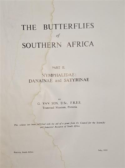 Scarce complete set. Part 1: Papilionidae & Pieridae; Part 2: Nymphalidae: Danainae & Satyrinae; Part 3: Nymphalidae: Acraeinae; Part 4: Nymphalidae: Nymphalinae. Transvaal Museum Memoirs No's: 3, 8, 14 + 22.
