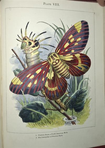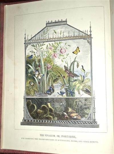 First edition. Fine decorative hand-coloured engraved plates. This charming work, published during the peak of Victorian interest in natural history, instructed the reader how to build, stock and maintain an insect vivarium. The coloured frontispiece illustrates a highly decorative glass and zinc case, containing aquatic, land and flying insects. This idea was clearly influenced by the growing popularity of aquaria and ornamental fern cases. These had become part of the furniture of an educated, middle-class Victorian home. Indeed, Humphreys describes the structure of the "insect home" as a drawing room object and clearly expected it to provide both scientific and aesthetic interest.