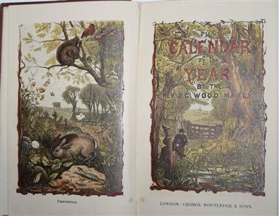 First edition. Attractive additional chromolithographic title page (with title: 'The Calendar of the Year') and frontispiece, wood engravings to text. Pp. ix + x are reversed.