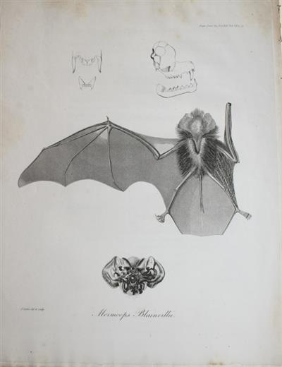 From the Transactions of the Linnean Society of London, 13(1) : 73-82. Illustrated with an engraving by John Curtis. Leach states in this paper, 'I solicit the aid of travelling naturalists, and request them to have the goodness to send me specimens of Bats (preserved if possible in spirits) from every part of the world.'