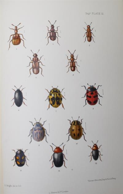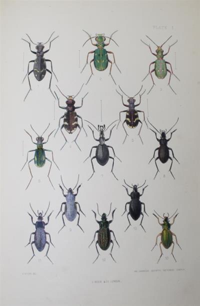 6 vols, roy. 8vo, orig. cloth. Three vols professionally rebacked, retaining orig. backstrips. Occasional light foxing. Plates bright and clean. Very good set. Book-plate of British coleopterist, Eric Gowing-Scopes (1913-2007) to each volume. Also with original owner's name, J.B, Bowring, neatly inscribed to verso of front free endpaper of the first five vols.