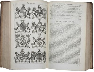 A particular and impartial Relation of the most memorable Transactions, as well of the Dead as the Living, of those who have distinguished themselves either by their noble or ignoble Deeds; without exaggerating their Virtue, or palliating their Infamy. The second of a 2-volume work. The engraved plates illustrate coats of arms of notable members of the peerage.