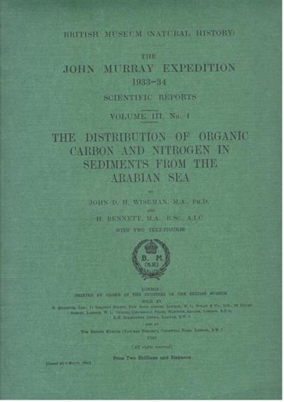 The Distribution of Organic Carbon and Nitrogen in Sediments from the Arabian Sea. The John Murray Expedition 1933-34 Scientific Reports Vol. III, No. 4