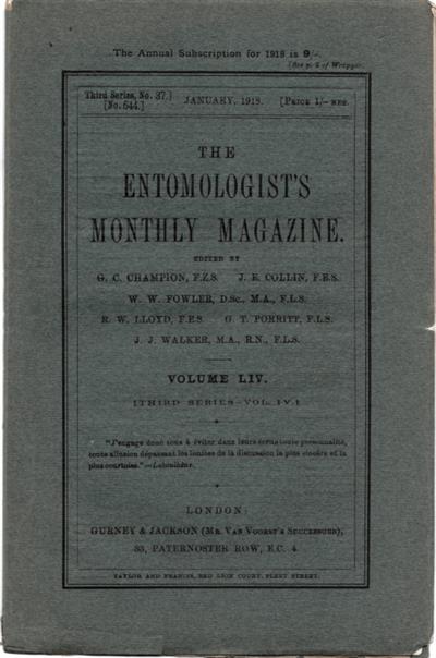 The Entomologist's Monthly Magazine Vol. 54 (1918)