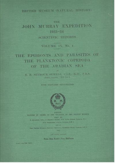 The Epibionts and Parasites of Planktonic Copepoda of the Arabian Sea. The John Murray Expedition 1933-34 Scientific Reports Vol. IX, No. 4