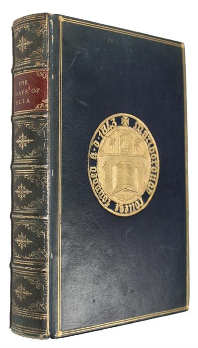 Full blue calf, marbled endpapers + edges; raised bands + gilt tooling to spine; red leather title piece. Prize binding, Marlborough College, with gilt armorial decoration to front board. Vg. Minor scuff to rear cover.
