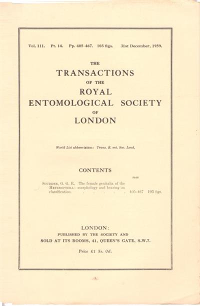 Transactions of the Royal Entomological Society of London, 111(14): 405-467.