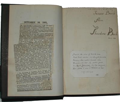 Provenance: 'To the model maiden of the 19th century Jessie Beck from Theodore Beck, Dec 13, 1881', with 3 initial letters depicted as worms (inscription to fly-leaf). Theodore Beck (1859-1899), was a Quaker and British educationalist, who worked under the British Raj in India, and was Principal of the Mahommedan Anglo-Oriental College, Aligarh, from 1883 up until his death in 1899.