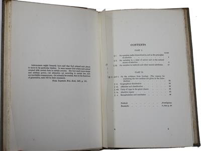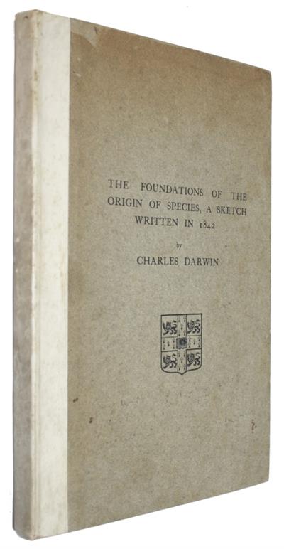 Very scarce. First unpublished edition, printed for presentation only to delegates to the Cambridge celebration of the centenary of the birth of Charles Darwin and of the fiftieth anniversary of the publication of his Origin of Species. (Later the same year this was reprinted and published together with the sketch of 1844). 'When Francis Darwin put together Life and Letters he did not know that the sketch of his father's evolutionary ideas, which was written in 1842, had survived. The pencil manuscript was discovered in 1896, after the death of his mother, in a cupboard under the stairs at Down House.' (Freeman p. 182).