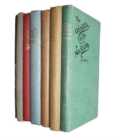 Rare complete set of the privately published original editions. Some volumes now scarce, particularly that on the Noctuidae (Females), of which only 100 copies were printed due to wartime restrictions.