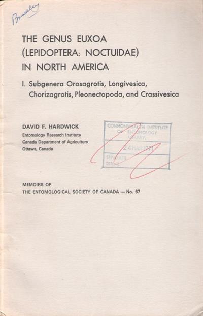 The Genus Euxoa (Lepidoptera: Noctuidae) in North America: 1.Subgenera Orosagrotis, Longivesica, Chorizagrotis, Pleonectopoda, and Crassivesica