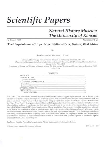 The Herpetofauna of Upper Niger National Park, Giunea, West Africa