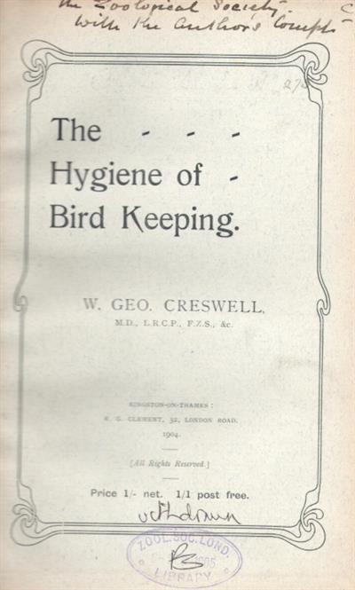 Bound in cloth, orig. printed wrs retained. Ex-lib. (ZSL): ink stamps to wr + title page. Inscribed by the author to the Zoological Society of London