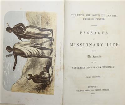 Third Thousand (first published 1853). Scarce. Edited by Robert Gray, Bishop of Cape Town. Taken from the journals and diaries of Archdeacon Nathaniel James Merriman (1809-1882) (later the third Bishop of Grahamstown), during his time as a missionary in the lands of the Cape Colony. Contains a lively account of the peoples and landscape from the early history of South Africa.